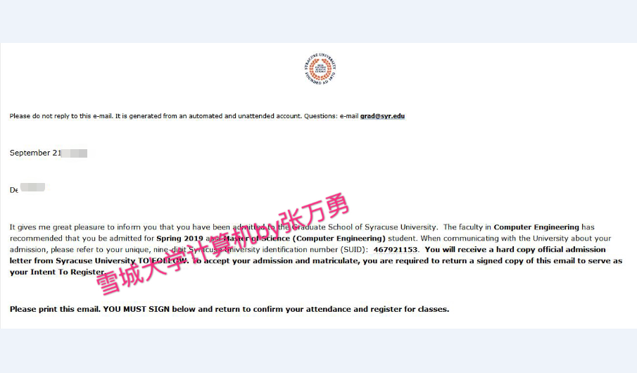申请美国排名靠前的学校一定要提前做好相关准备和规划,我们可以根据美国院校的要求去准备相关申请资料,去针对性提高美国大学所需要的相关资料,我们在整个办理过程中会随时提醒学生在不同的时间应该做好不同的材料准备,安排学生和我们文书老师进行头脑风暴,最终通过我们申请团队的努力以及学生和家长的积极配合终于获得了雪城大学计算机工程专业录取。